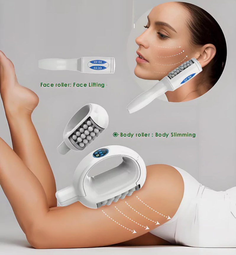 Rollerio funkcija: specialūs besisukantys silikoniniai rutuliukai suteikia mikro-vibracijas ir kompresiją odai bei audiniams. Tai pagerina limfos nutekėjimą, kraujotaką, stimuliuoja odos elastingumą ir padeda tolygiai formuoti kūno linijas.