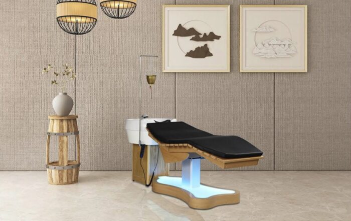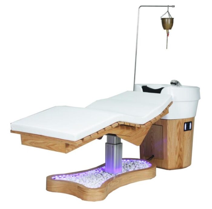 Šis masažo stalas sukurtas specialiai Ajurvedos procedūroms, jungiant tradicijas ir modernias technologijas. Elegantiškas dizainas, aukštos kokybės apmušalais ir praktišku aliejaus stovu užtikrina patogumą tiek specialistui, tiek klientui.