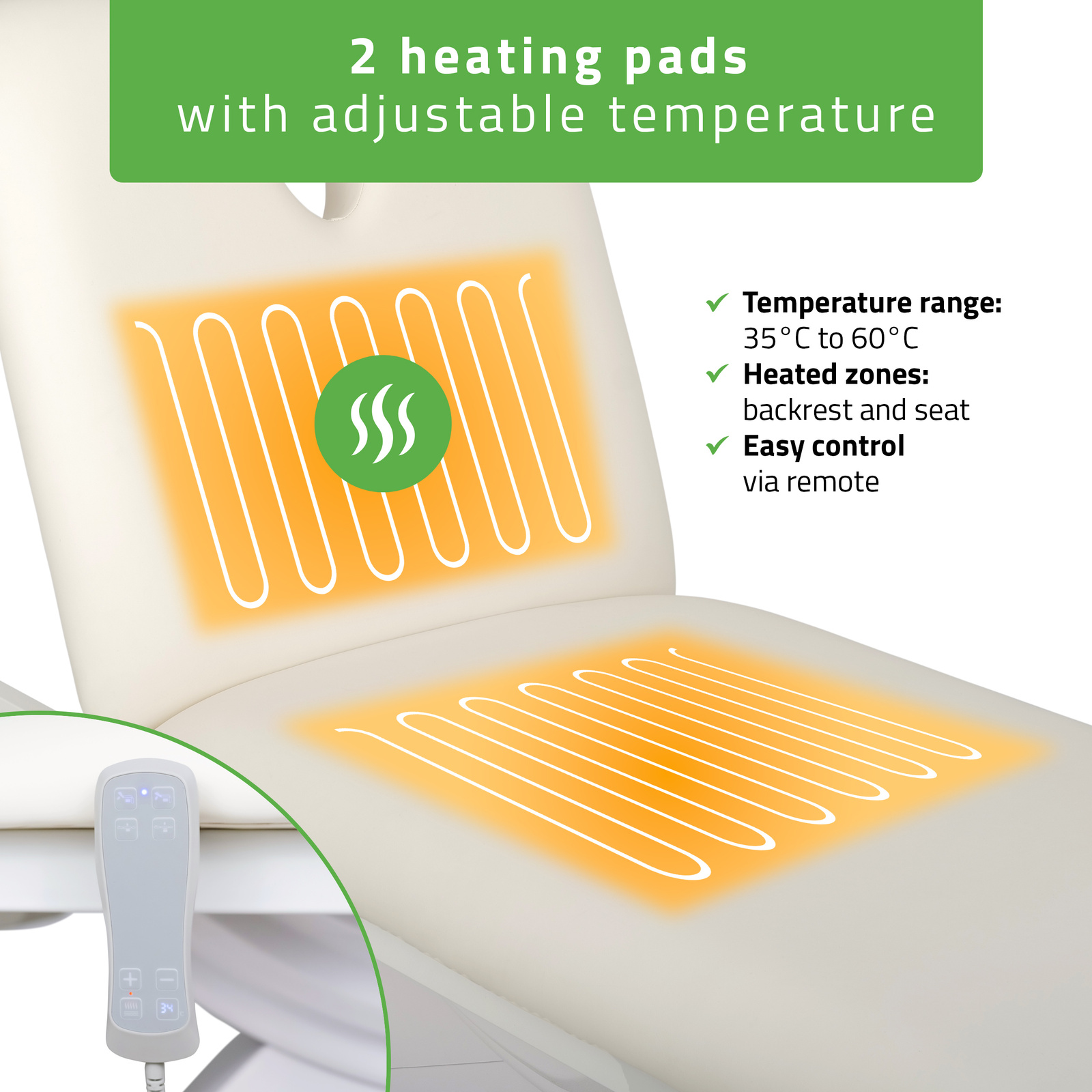 Elektrinė kosmetologinė kėdė Azzurro Lux 3M su šildymu, balta