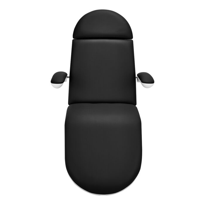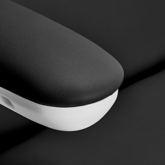 Ištraukiamas galvos atlošas leidžia kėdę pritaikyti skirtingo ūgio klientams ir užtikrina stabilią galvos atramą procedūros metu. Porankiai sukasi 180° kampu – tai palengvina įsėdimą bei suteikia patogų priėjimą specialistui. Šie sprendimai ženkliai padidina naudojimo komfortą ir darbo ergonomiką.