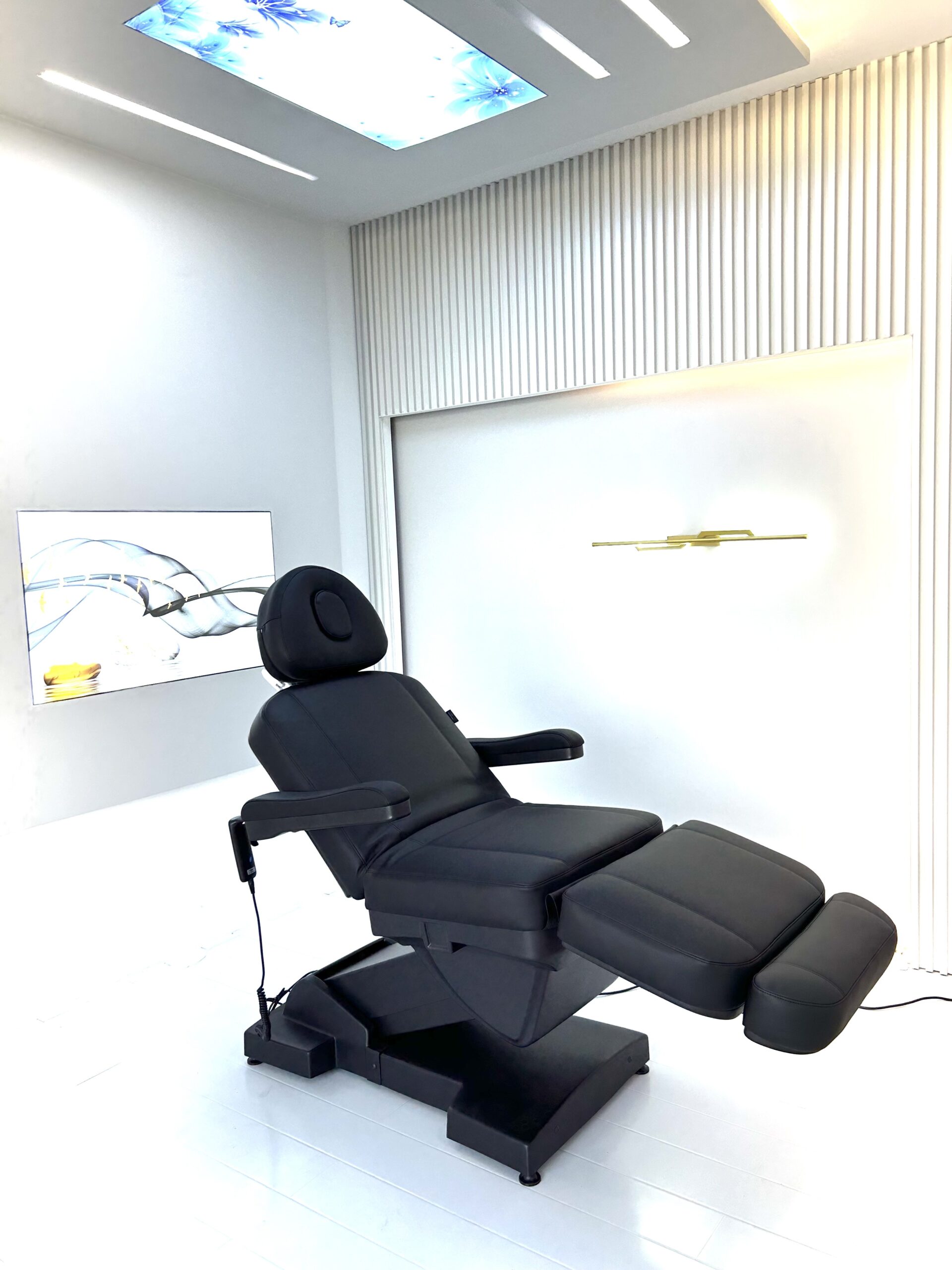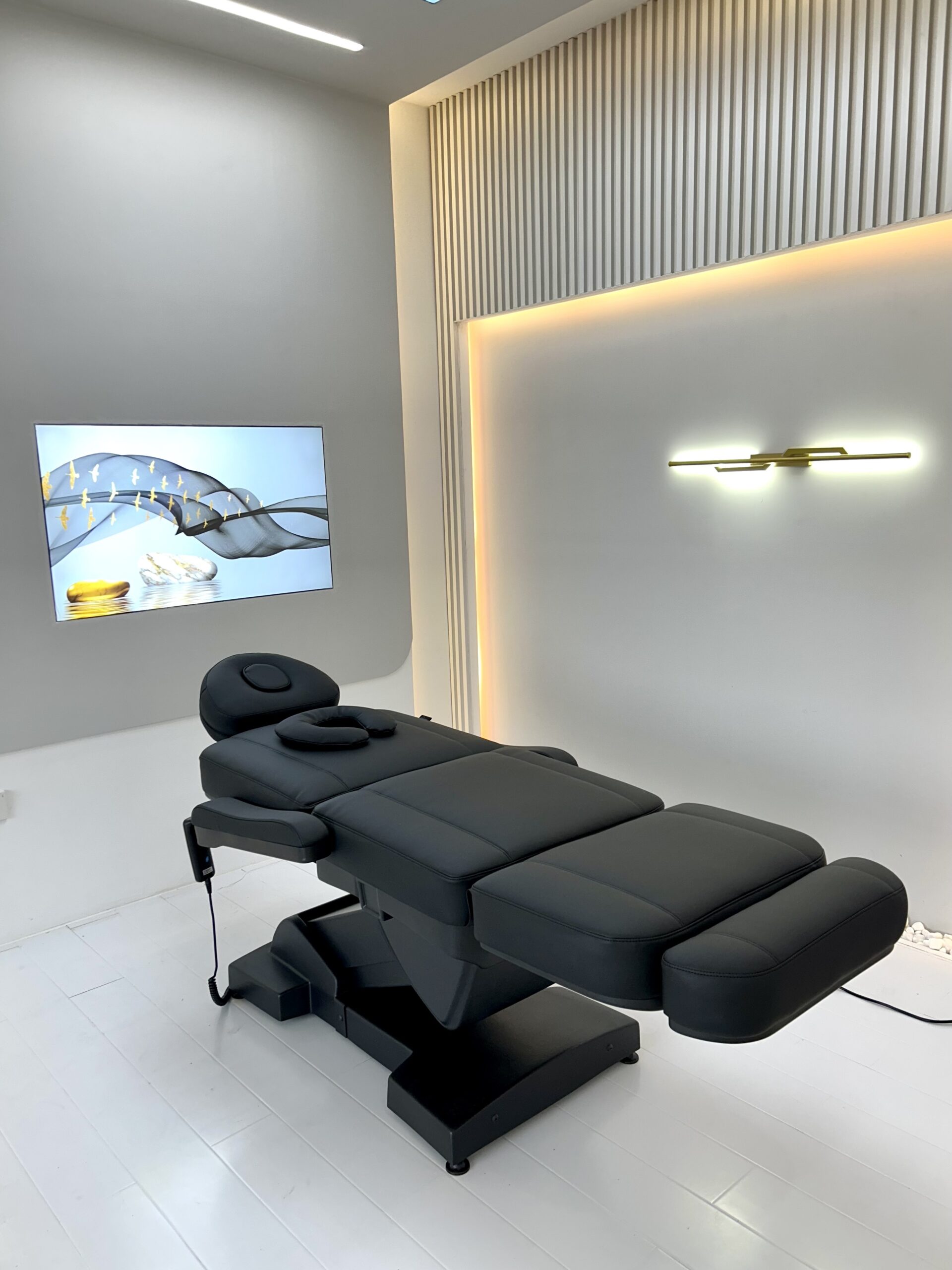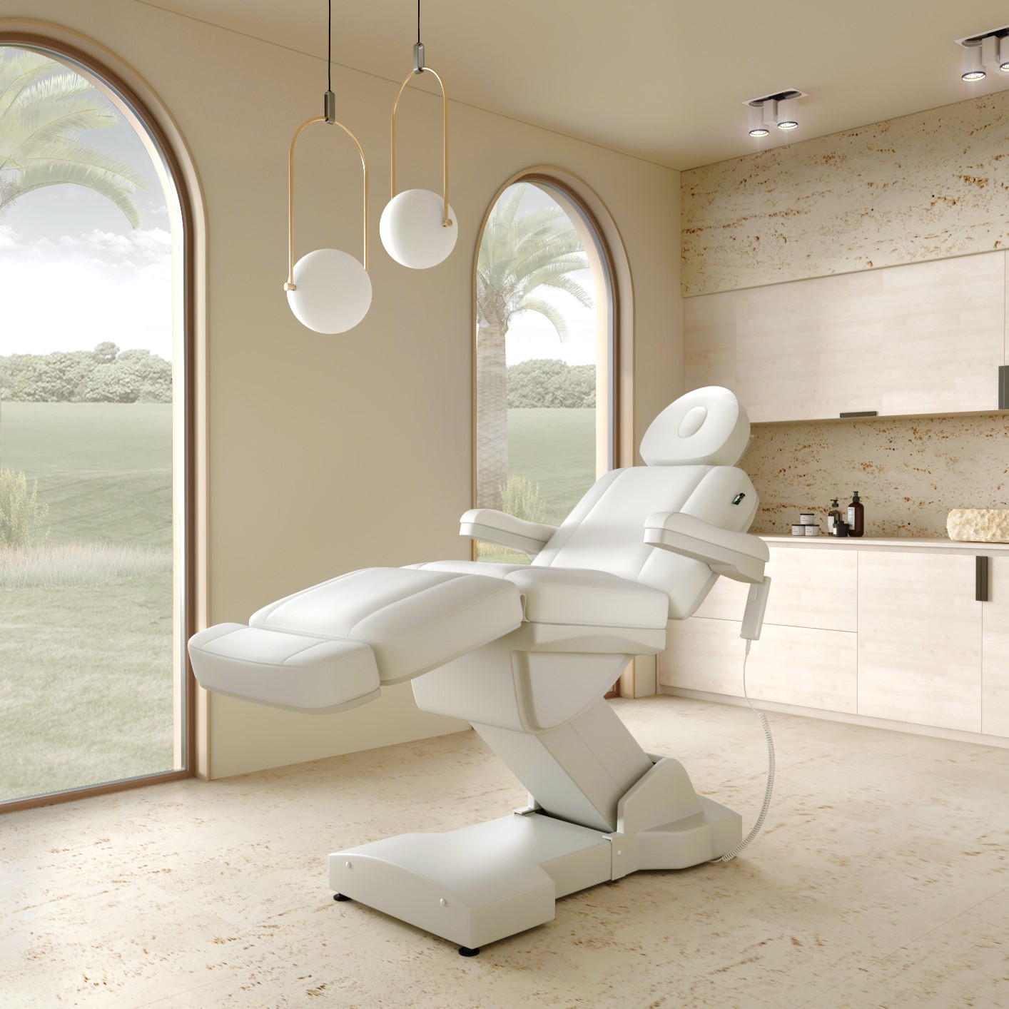 Tai specialiai grožio specialistams sukurtas aukštos kokybės procedūrų stalas, pritaikytas intensyviam kasdieniam darbui grožio salonuose, SPA centruose, estetinės kosmetologijos, pedikiūro, mikropigmentacijos ar tatuiruočių studijose. Keturi galingi elektriniai varikliai leidžia tiksliai ir tyliai reguliuoti aukštį, atlošo kampą, sėdynės pasvirimą bei kojų dalį, užtikrinant maksimalų kliento komfortą ir ergonomiškas darbo sąlygas specialistui.