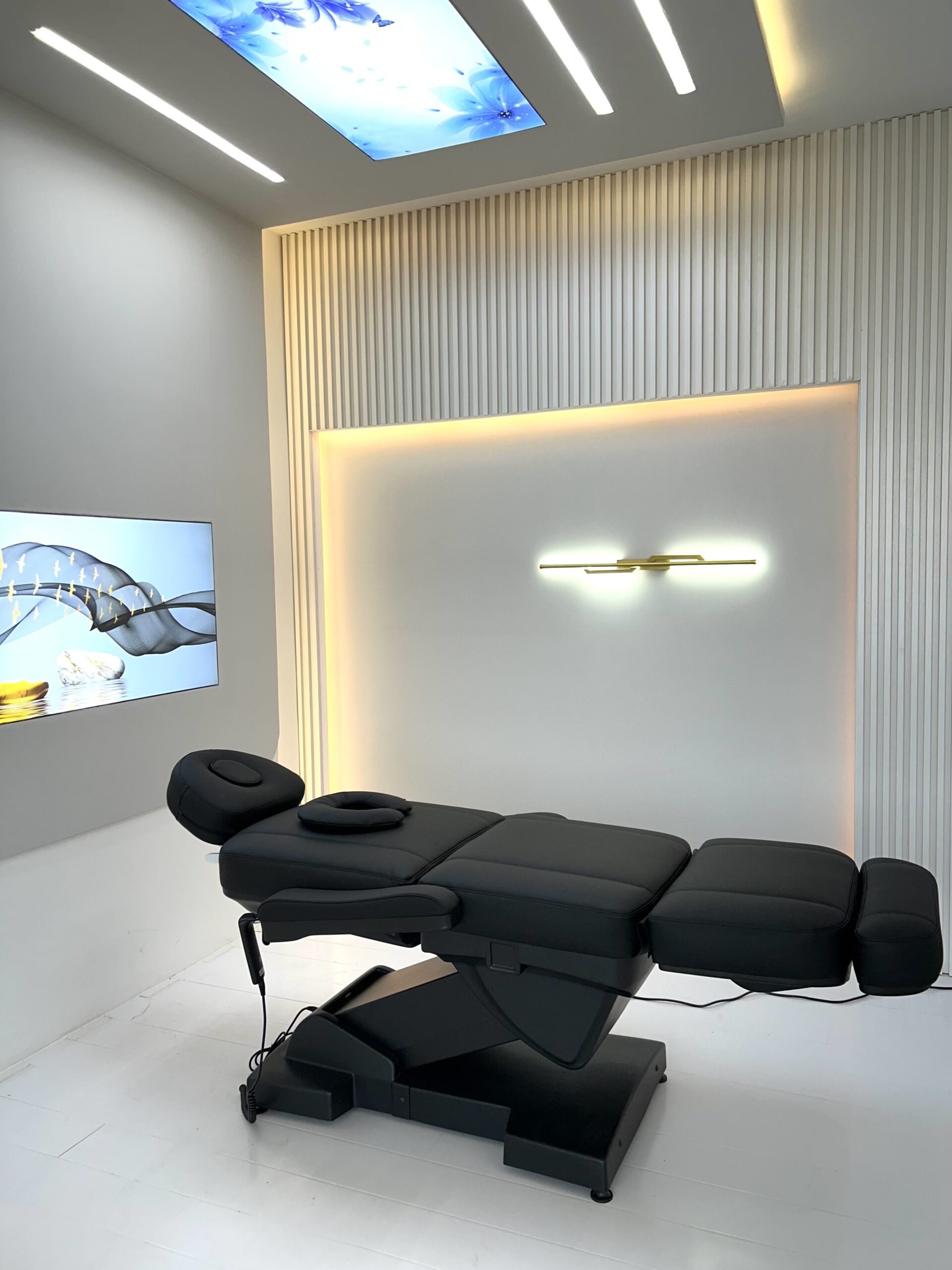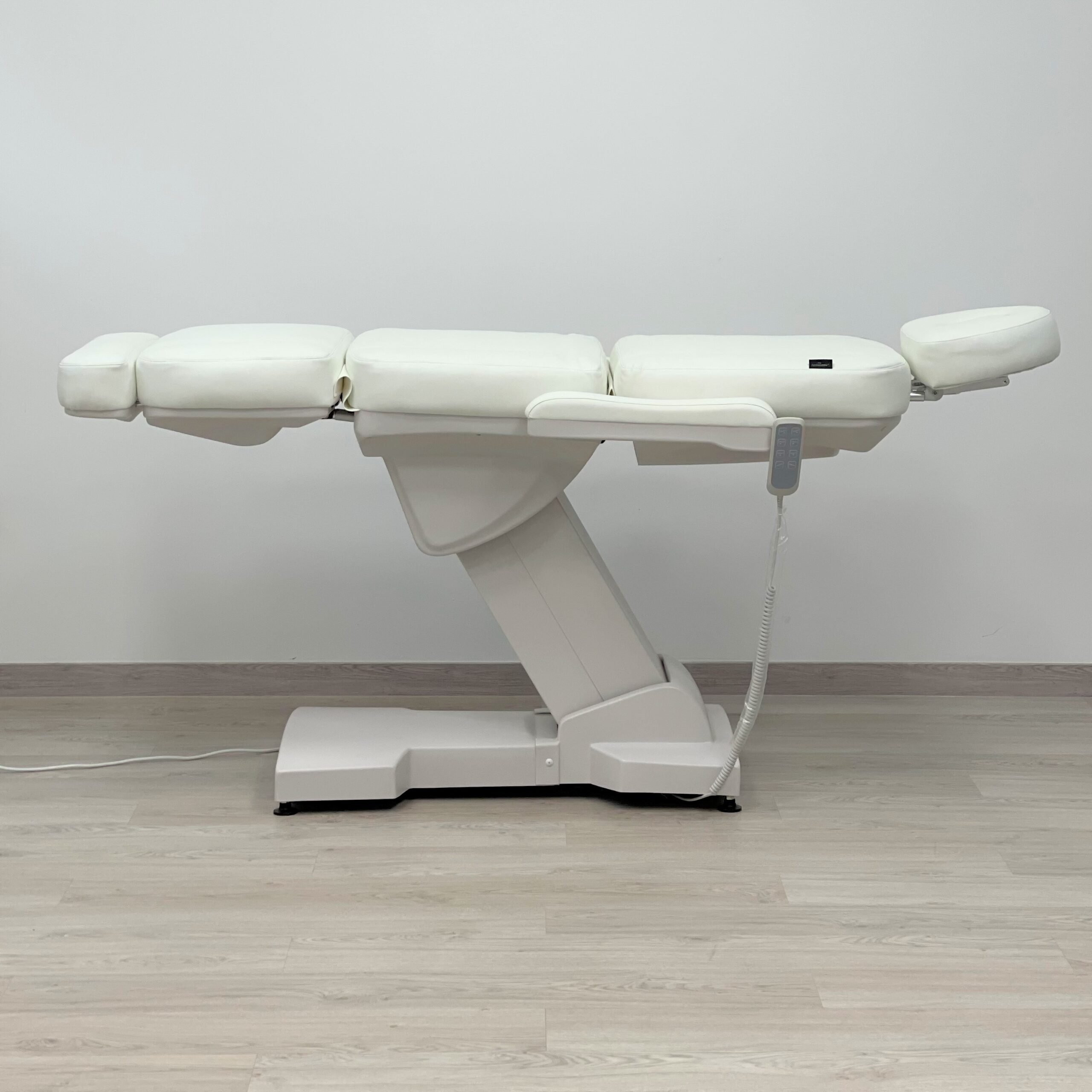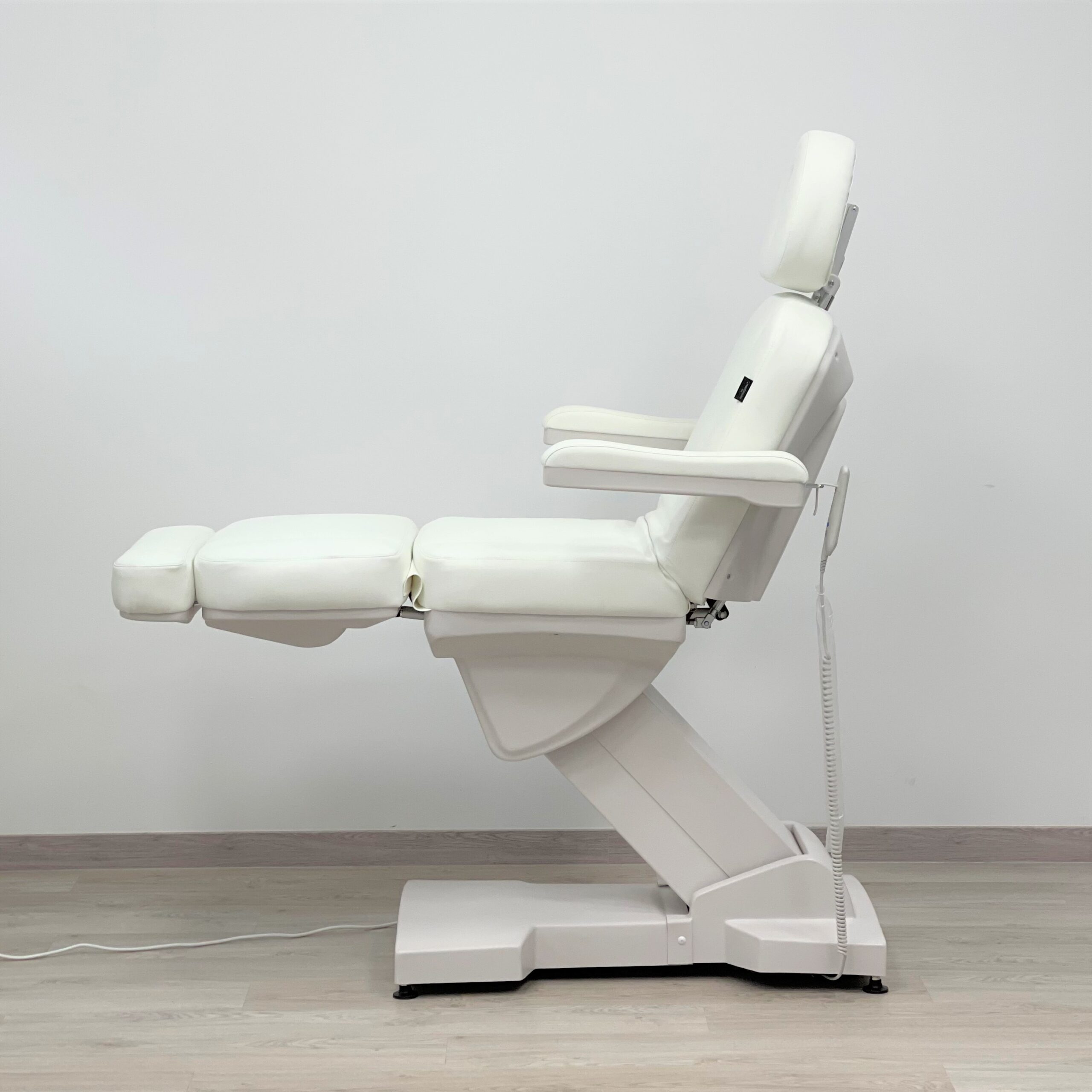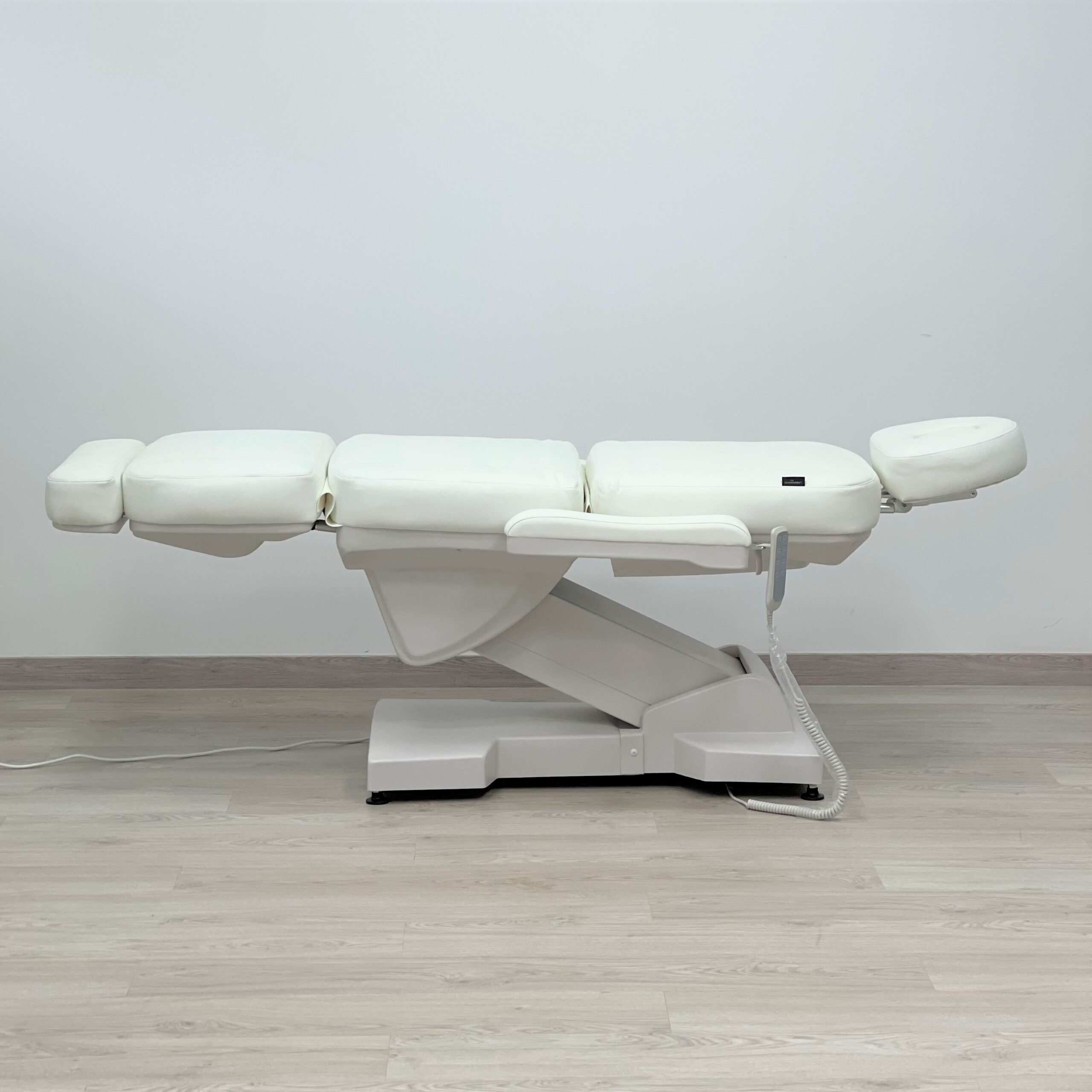 Tai specialiai grožio specialistams sukurtas aukštos kokybės procedūrų stalas, pritaikytas intensyviam kasdieniam darbui grožio salonuose, SPA centruose, estetinės kosmetologijos, pedikiūro, mikropigmentacijos ar tatuiruočių studijose. Keturi galingi elektriniai varikliai leidžia tiksliai ir tyliai reguliuoti aukštį, atlošo kampą, sėdynės pasvirimą bei kojų dalį, užtikrinant maksimalų kliento komfortą ir ergonomiškas darbo sąlygas specialistui.