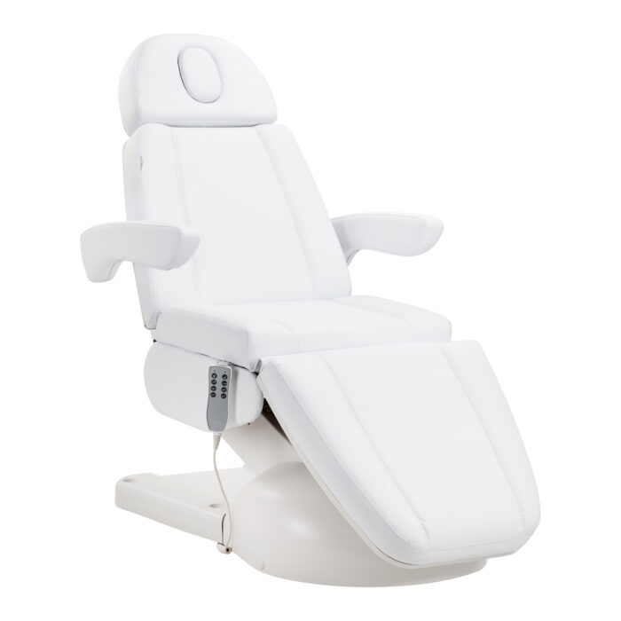 Azzurro Lux elektrinė kosmetologinė kėdė aprūpinta 4 pavaromis, valdomomis laidiniu nuotolinio valdymo pulteliu, leidžiančiu sklandžiai ir tiksliai reguliuoti kiekvieną kėdės dalį. Intuityvus valdymas ir platus reguliavimo diapazonas leidžia lengvai pritaikyti kėdę tiek kliento komfortui, tiek specialisto darbo ergonomikai. Ši kėdė pasižymi stabilumu, funkcionalumu ir universalumu, todėl puikiai tinka grožio, podologijos ir estetinės medicinos kabinetams.