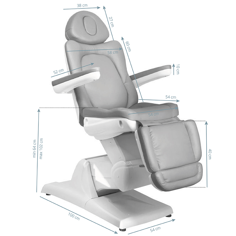 Platus aukštyn ir žemyn reguliavimas leidžia individualiai reguliuoti kėdės aukštį pagal procedūrą atliekančio asmens ūgį ir procedūros tipą.