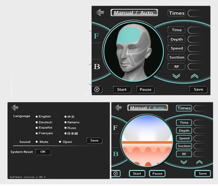 Valdo epidermio ir dermos sluoksnį, kontroliuodamas adatos gylio 0,1 mm valdymas
