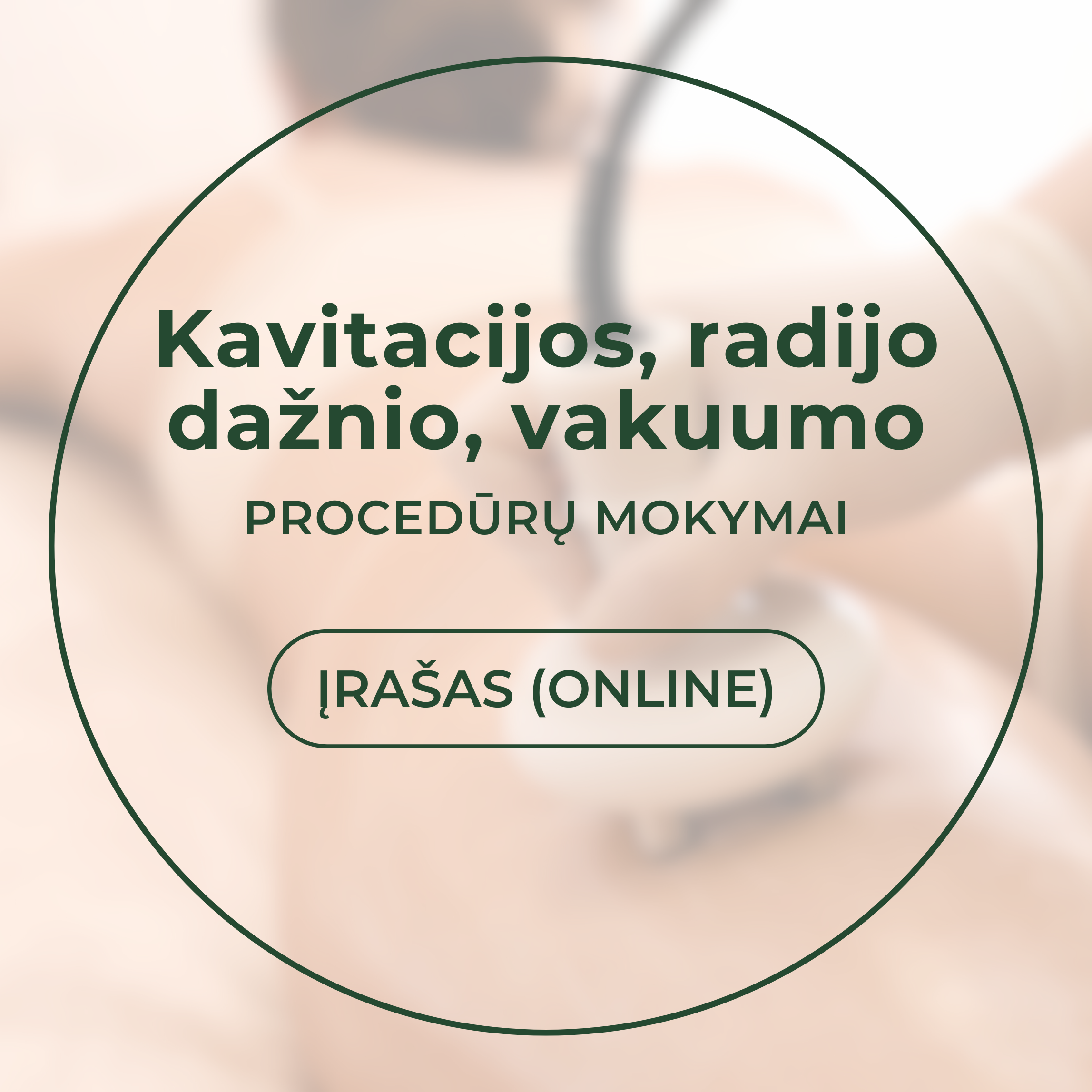 Kavitacijos, radijo dažnio, vakuumo procedūrų mokymai kosmetologams ĮRAŠAS