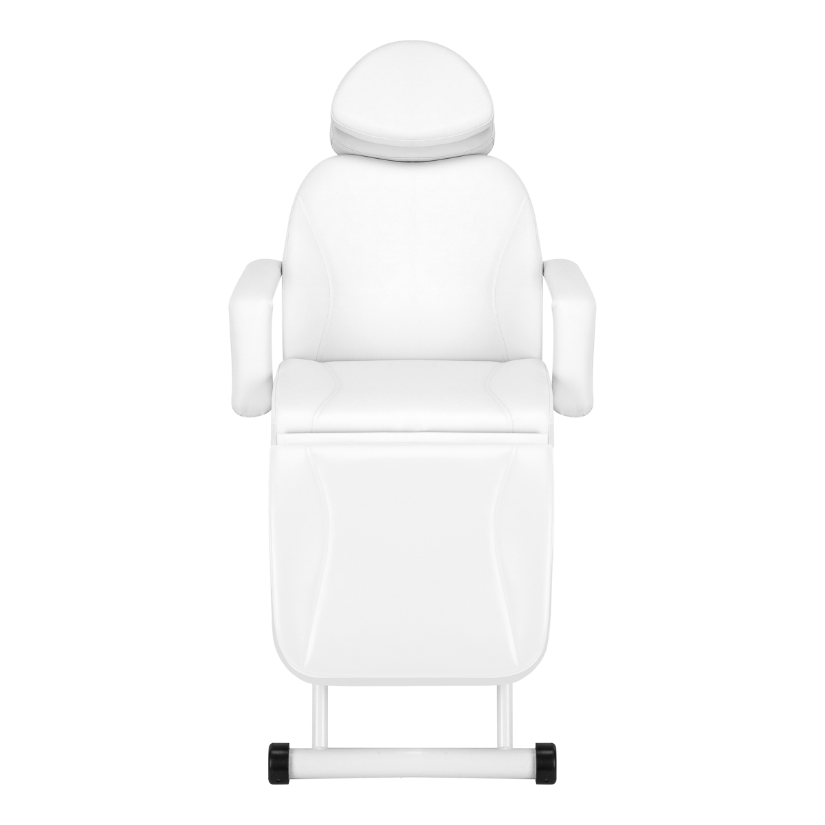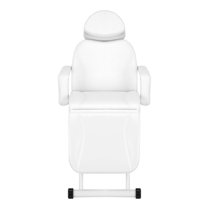 Lovos bazė turi fiksuotą aukštį, todėl sėdynė išlieka pastoviame lygyje, užtikrinant komfortą naudojimo metu. Tvirta metalinė konstrukcija, nudažyta juodais atspalviais, suteikia būtiną stabilumą procedūrų metu. Maždaug 15 cm pailginamas galvos atlošas užtikrina puikią galvos atramą nepriklausomai nuo kliento ūgio. Tai leidžia laisvai atlikti įvairias procedūras, įskaitant kosmetologiją, grožio procedūras.