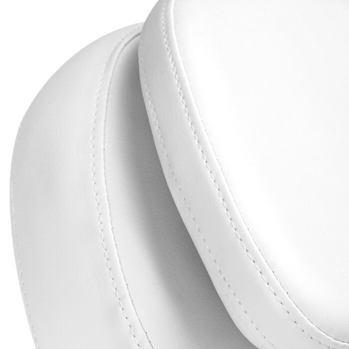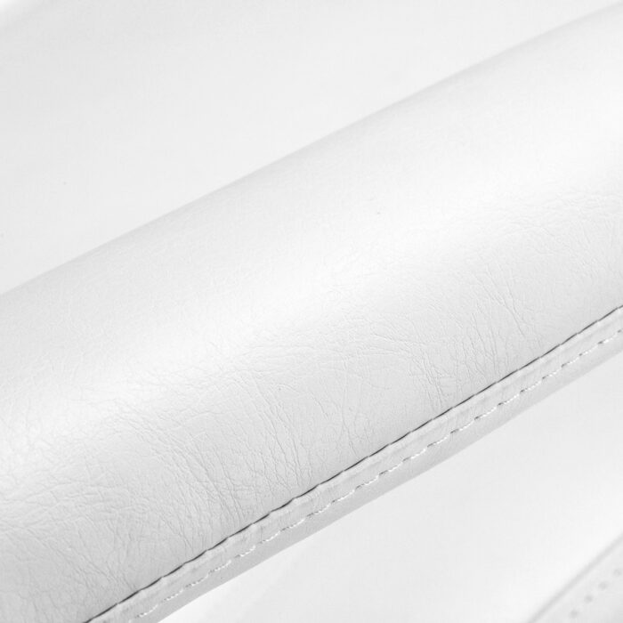 Krėslas užpildytas putomis ir padengtas baltos spalvos dirbtine oda. Dėl tokios medžiagos pasirinkimo įranga yra patogi naudoti, atspari drėgmei ir lengvai valoma. Tinkamai suformuoti kraštai suteikia sėdimajai daliai ergonomišką formą. Paprastas dizainas ir klasikinės spalvos leidžia krėslą lengvai priderinti prie bet kokio interjero.