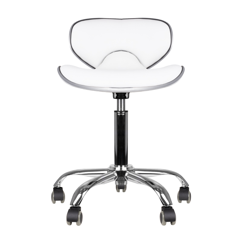 Patogi sėdimoji dalis aptraukta balta ekologiška oda.
