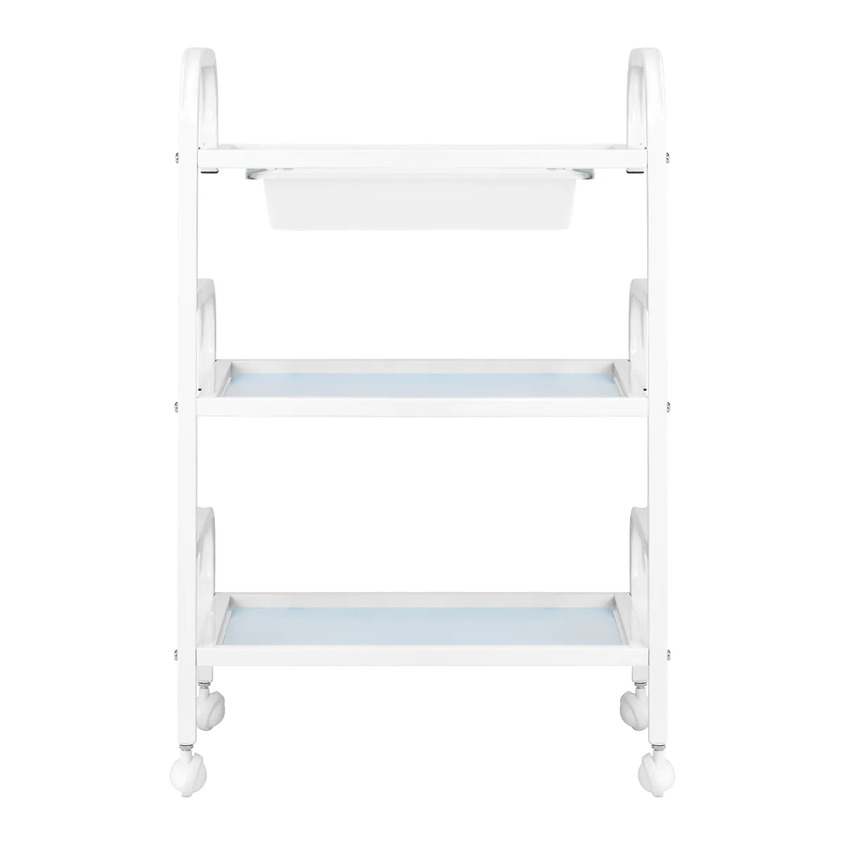 „Basic 121“ kosmetologijos asistentas yra funkcionalus baldas, kuris puikiai tiks bet kuriame grožio salone ar SPA centre. Lengva konstrukcija palengvina kasdienį darbą, o trys stiklinės lentynos užtikrina patogų kosmetologijos, priedų ir įrangos laikymą. Papildomas dėklas po viršutine lentyna leidžia greitai pasiekti dažniausiai naudojamus įrankius. Minimalistinis dizainas suteikia interjerui profesionalumo.