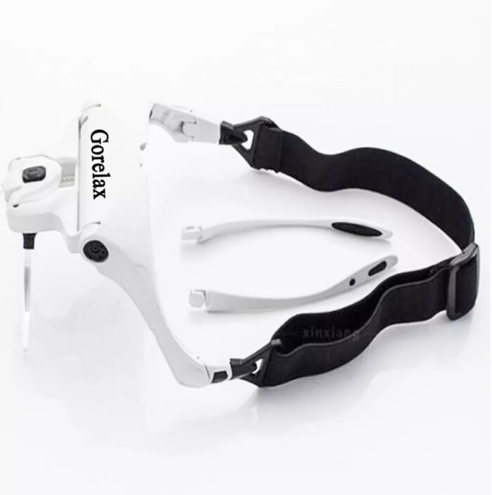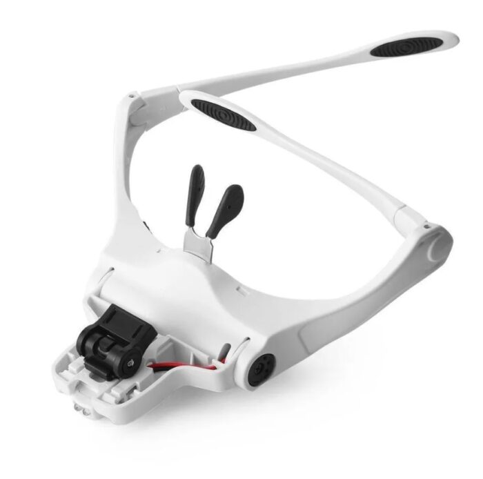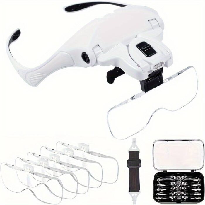 Kosmetologo didinamieji akiniai su keičiamais lęšiais ir LED apšvietimu