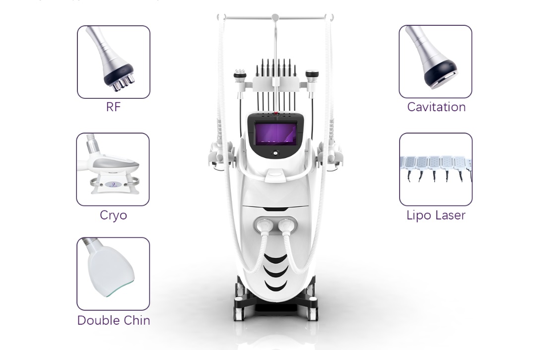 Privalumų schema: 4 technologijų derinys: krioterapija + kavitacija + lipo lazeris + RF