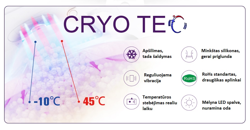 — Išankstinis pašildymas ir šaldymas, greitina procedūros rezultatus, siekiant efektyvaus rezultato riebalų pašalinimo procedūroje.