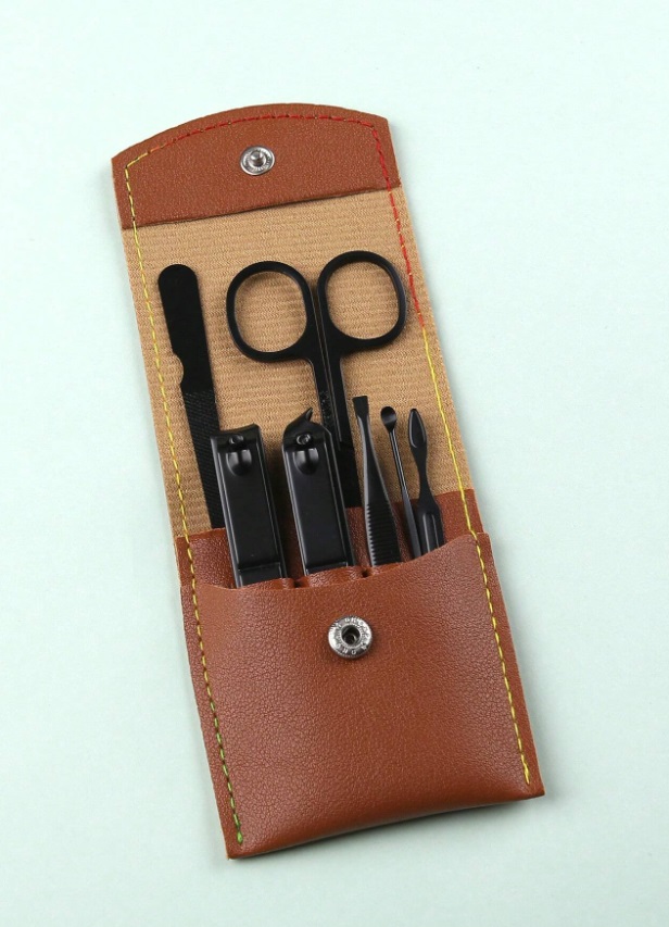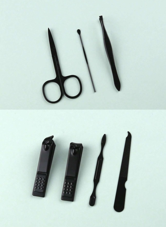 Manikiūro įrankių rinkinys, juodos spalvos: 7 įrankiai