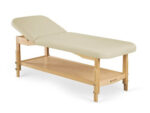 Ypatingai patogus, dviejų segmentų masažo stalas su aukščio reguliavimu, aprūpintas praktiška lentyna kosmetikai ir aksesuarams. Specialios sudėties 5 cm storio putos užtikrina visišką komfortą procedūros metu ir leidžia klientui visiškai atsipalaiduoti. Reguliuojamas atlošas suteikia stalui plačias panaudojimo galimybes. Natūralus buko medis ir tvirtas stalviršis su suapvalintais kampais suteikia stalui modernią ir estetišką išvaizdą.