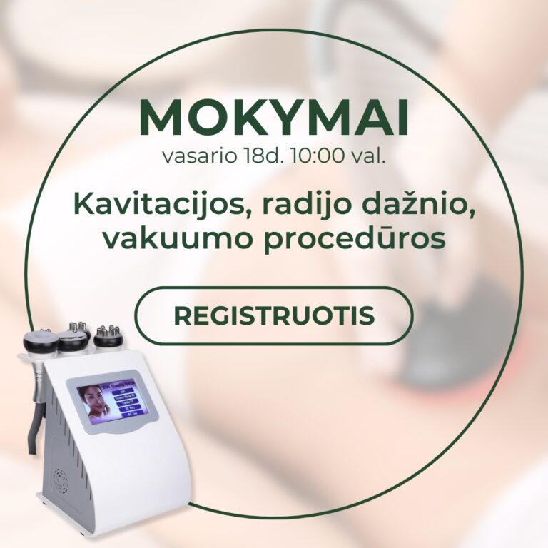 Kavitacijos, radijo dažnio, vakuumo procedūrų mokymai kosmetologams GYVAI