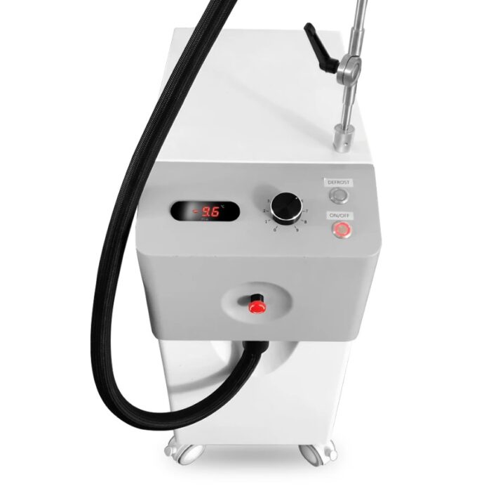 Odos vėsinimo aparatas naudoja pažangiausią Vokietijos šaldymo technologiją, vidinė aušinimo sistema tiesiogiai įsiurbia orą ir išleidžia tinkamos temperatūros šaltą orą, kuris purškia tiesiai į poprocedūrinę vietą, kad atvėsintų odą ir apsaugoti nuo odos nudegimų, patinimų, skausmo.