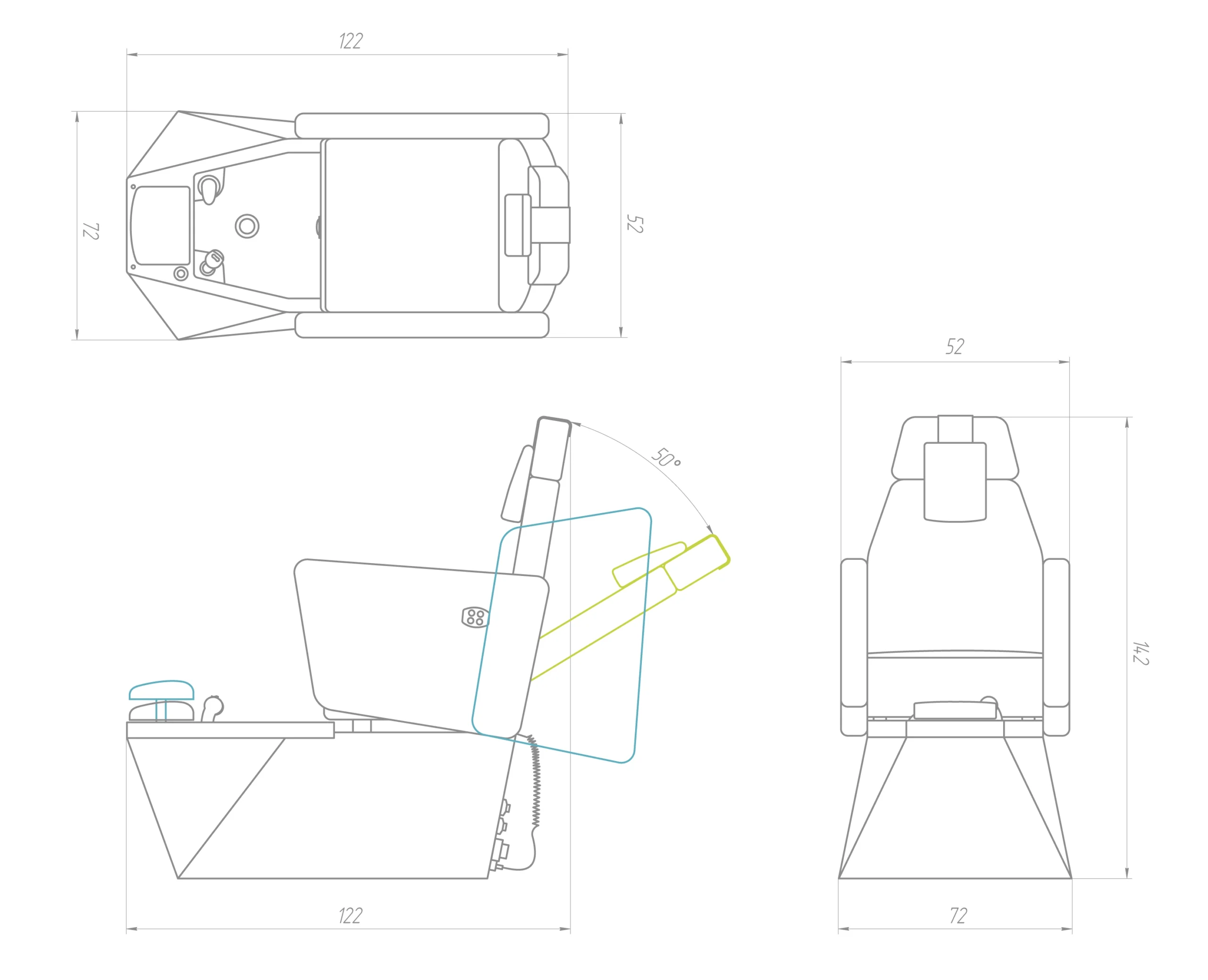 Krėsle įdiegta elektrinė reguliavimo sistema su dviem varikliais, leidžianti beveik 90° kampu reguliuoti atlošą bei horizontaliai perstumti sėdimąją dalį, kad būtų idealiai pritaikytas atstumas tarp sėdynės ir pedikiūro vonelės. Integruotas valdymo pultas krėslo šone užtikrina paprastą ir intuityvų naudojimą procedūros metu.