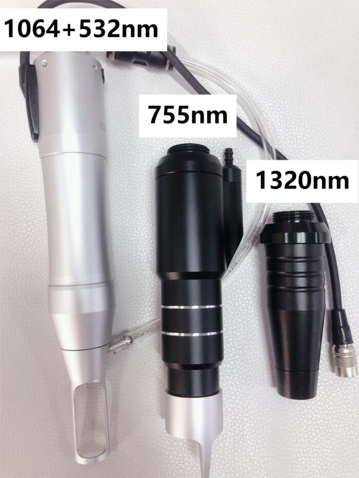 ✬ 1064 nm / 532 nm – skirti 19 rūšių pigmentų šalinimui: rudos dėmės, amžiaus dėmės, saulės dėmės, apgamai, nevi, įvairios tatuiruotės ir kt.