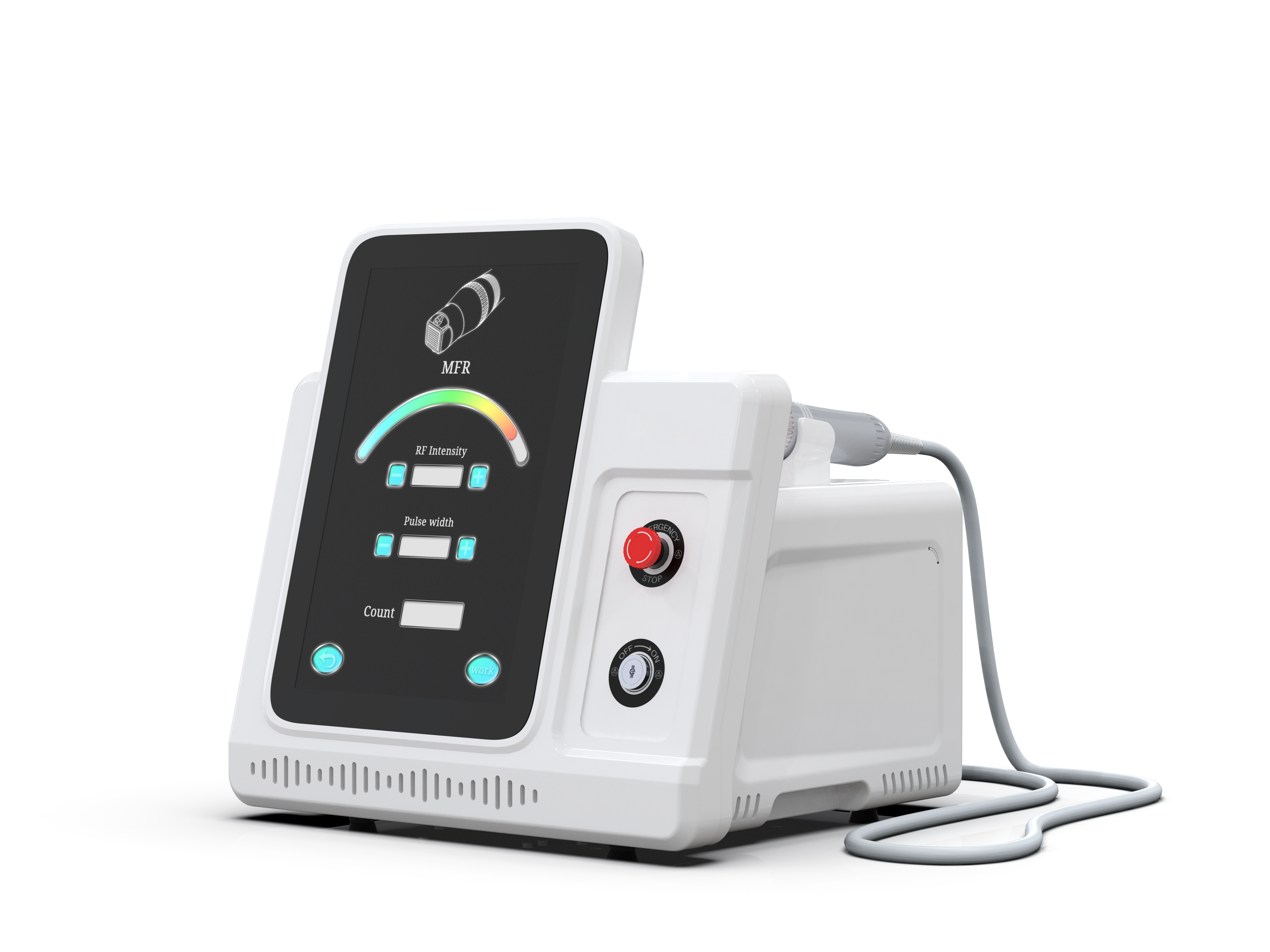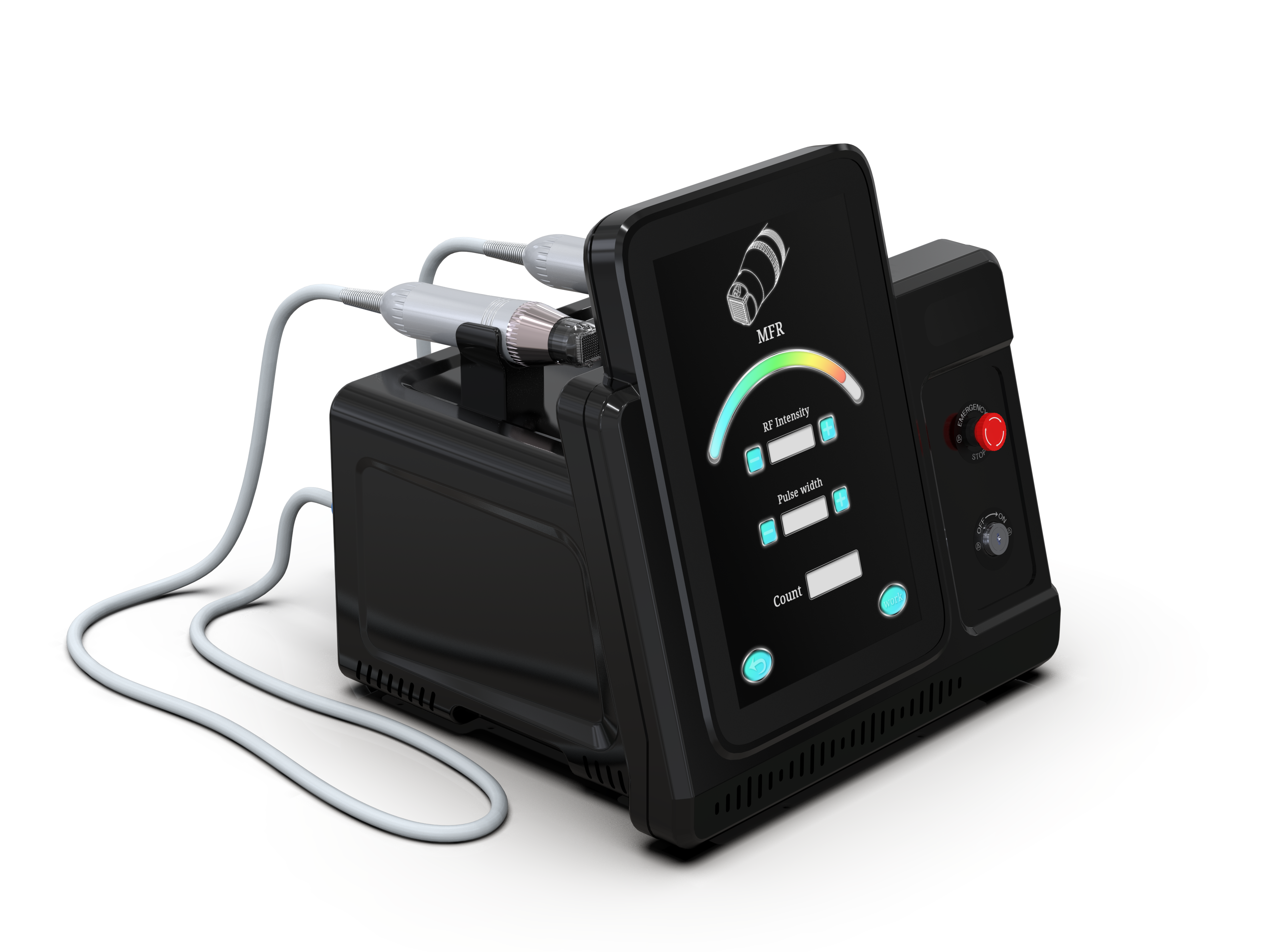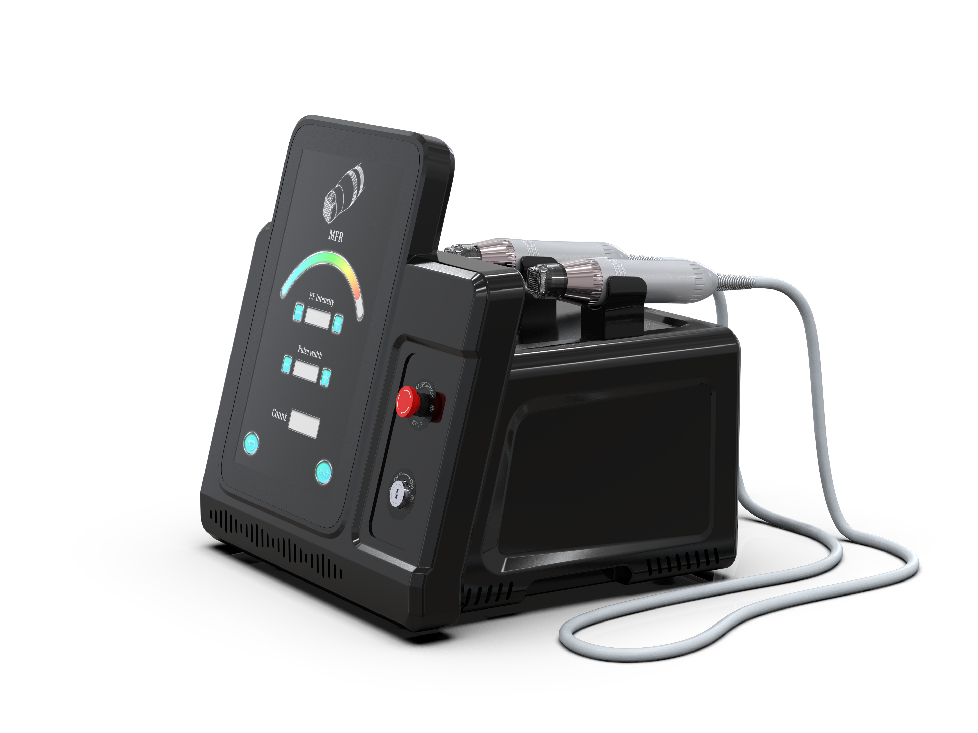 Profesionalus frakcinis RF mikroadatinis aparatas, skirtas pažangioms odos atjauninimo, stangrinimo ir tekstūros gerinimo procedūroms. Įrenginys sujungia 5 MHz radijo dažnio energiją ir frakcinę mikroadatinę mezoterapiją, todėl vienos procedūros metu efektyviai veikiami tiek paviršiniai, tiek gilesni odos sluoksniai. Šių dviejų technologijų derinys padeda intensyviau mažinti randus, raukšles ir strijas bei užtikrina greitą odos kokybės pagerėjimą. Aparatas turi du antgalius, leidžiančius taikyti skirtingus RF veikimo metodus pagal individualius procedūros poreikius.