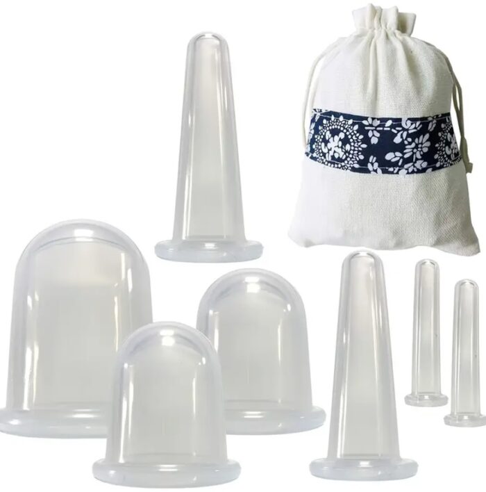 Silikoninių taurelių rinkinys veido ir kūno masažui, skaidrios spalvos, 7 vnt.