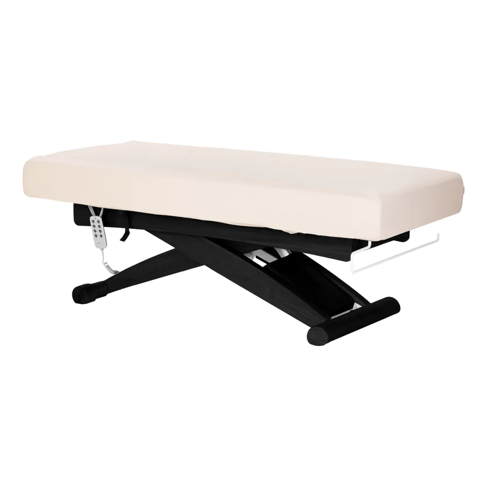 Tvirtas kryžiaus formos pagrindas užtikrina stabilumą ir saugumą naudojimo metu. Modernus, subtilus dizainas lengvai pritaikomas įvairiuose profesionaliuose interjeruose, o elegantiškos detalės suteikia erdvei solidumo ir estetikos. Gultas puikiai dera tiek moderniuose salonuose, tiek SPA ar sveikatingumo erdvėse.