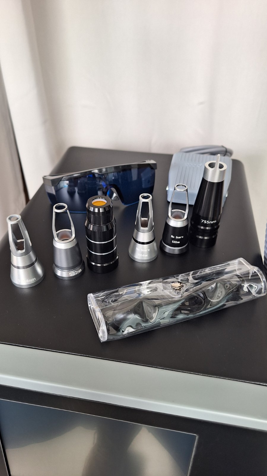 Neinvazinė 1064 nm galvutė: (juodai, tamsiai mėlynai, pilkai ir tamsiai pilkai)