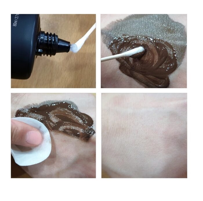 Naudojant pigmentus, pvz., permanentinį makiažą, tatuiruočių procedūras ir microblading, valomasis gelis užtikrina patikimą valymo efektyvumą.